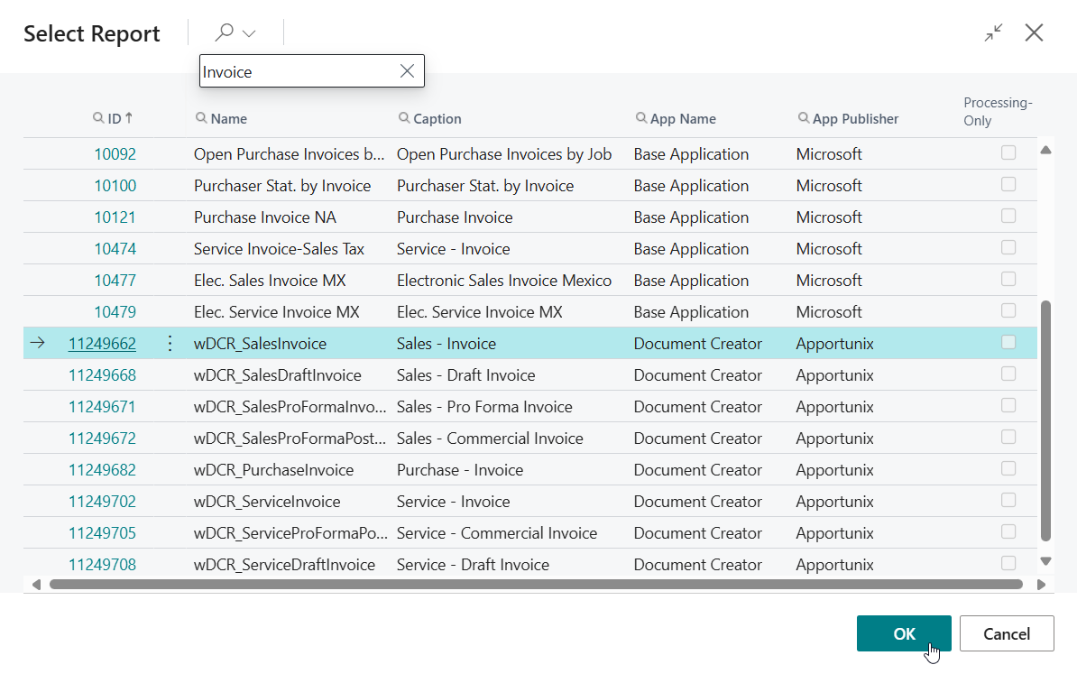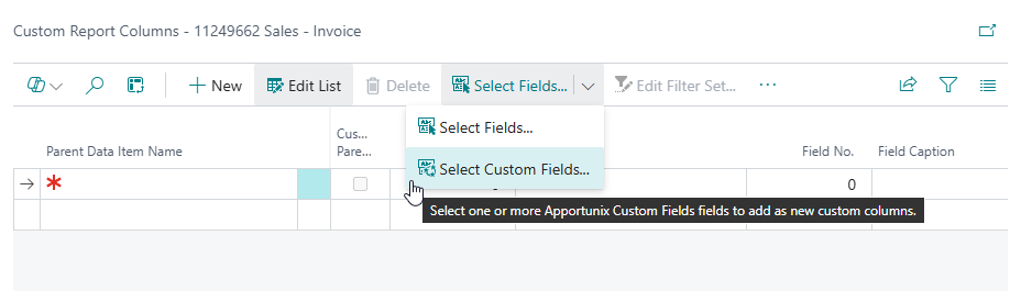 When you would like to add fields as new columns to existing or custom report objects in Business Central without using Apportunix Document Creator, then this is also possible.