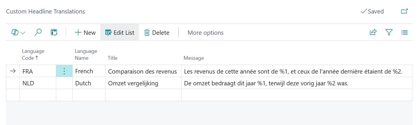 On this page you can use the New action to create and configure a new headline definition. Each custom headline definition has a unique Entry No., which is a positive integer value.