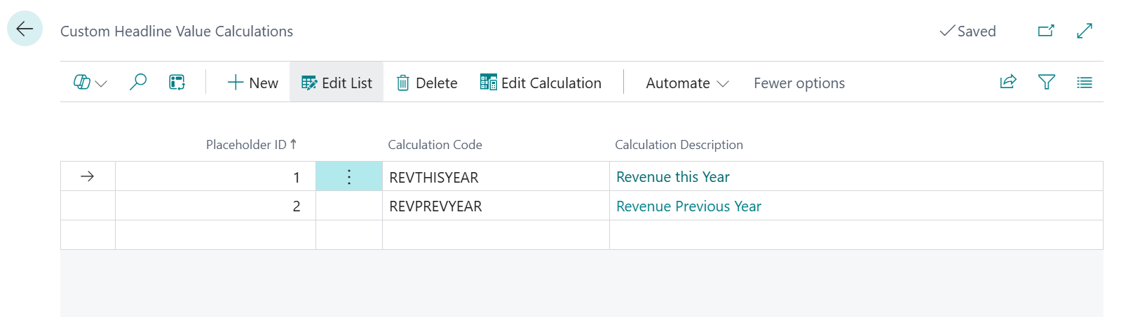 You can use the Value Calculations action to open the Custom Headline Value Calculations page to map the placeholders by Placeholder ID to a Calculation.