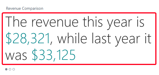 where %1 and %2 are placeholders that will be substituted with the calculated value of the revenue this year and revenue last/previous year respectively.